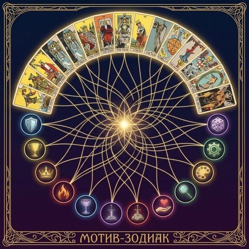 надпись «МОТИВ-ЗОДИАК». Стиль — мистический, архетипический,