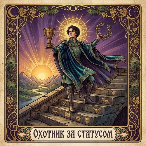 Охотник за статусом соответствует двум арканам: VII Колесница и XXI Мир. Колесница — триумф, парад победителя, молодой воин, мчащийся вперёд на колеснице, запряжённой двумя сфинксами. Главное — чтобы триумф был видим. Мир — последний аркан, абсолютное достижение, фигура в лавровом венке, завершение цикла. Идеальная карта Охотника: достичь всего, замкнуть круг, стоять на вершине. Общий архетип: Триумфатор.