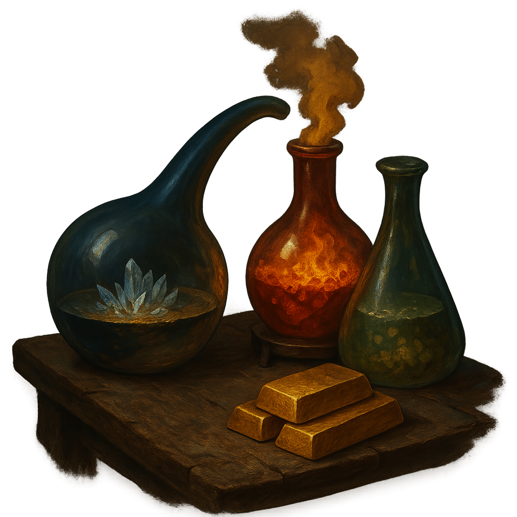 Идея: Процесс заработка в DeFi похож на алхимию — превращение одних активов в другие, более ценные, с помощью разных процессов (стратегий).