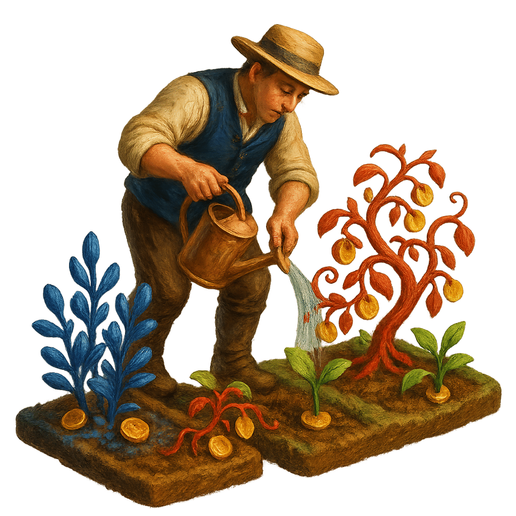Идея: Разные стратегии заработка — это как разные растения в саду. Одни требуют минимального ухода (стейкинг), другие — постоянного внимания и несут риски (фермерство), но все приносят плоды.
